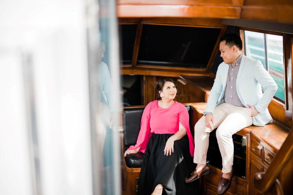 There are fabulous escapes in the city, Ruzzell Fernandez and Vivienne Leigh De Guzman found a really good one for their shoot. The duo found their sea legs as they boarded a yacht to play the roles of Captain and First Mate. Of course, theirs was the more fashionable version that included suits and flowing dresses for dramatic effect. Livin’ the yacht life and loving it!