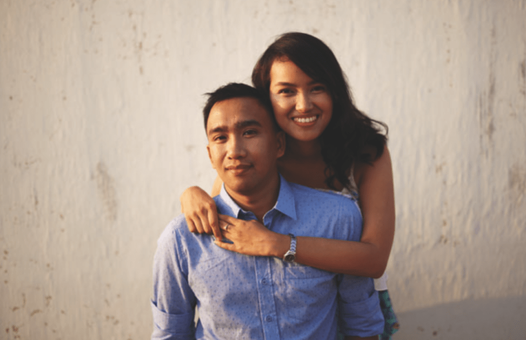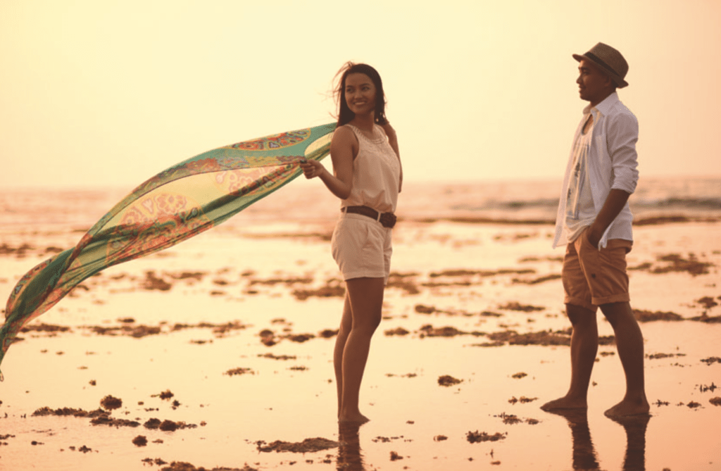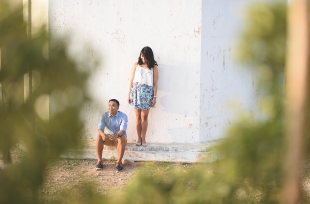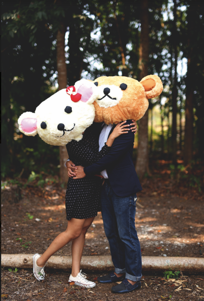Certain places bring back fond memories. When a happy experience occurs, we tend to etch the precious details in our minds for safekeeping. And so it happens that thinking of a certain place will suddenly bring on a nostalgic smile. Such is the way Emmanuel Valdepeña and Myla Ross Enerio view Bolinao, Pangasinan. This sun-sea-sand getaway served as the venue for their first monthsary as a couple, so it was an instant pick as the backdrop for their engagement shoot. The secluded location and the serenity of the views brought a sense of calm and creativity that inspired the couple to be spontaneous and fun with the concept for their photos, even hamming it up for the camera with a DIY mascot head.