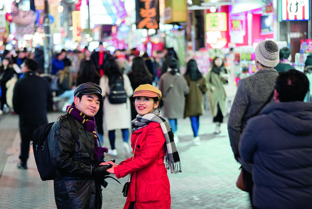 JAPAN WILL FOREVER HAVE a place in the hearts of ANTONIO KUDARAT MODENA II and NIÑA RAULYN MORALES. It was the first country they traveled together to and it’s a place they can’t stop gushing about for the culture and the attractions. To commemorate this, the duo created their own take on a winter wonderland theme in Osaka, frolicking in coats and getting all snuggly.
