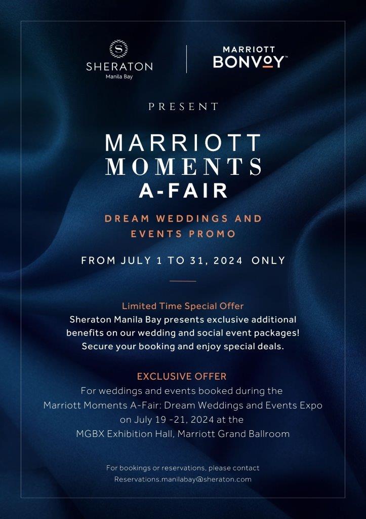 Catch this wedding supplier at the Marriott Moments A-Fair 2024 on July 19 to 21 at the MGBX Marriott Grand Ballroom. Attend the Moments & Themes Preview Presentations (10 mins) at the Moments & Themes Hall and get the chance to win lunch/dinner buffet or staycation packages from participaint hotels absolutely free. Click below to pre-register on or before July 18, 2024.