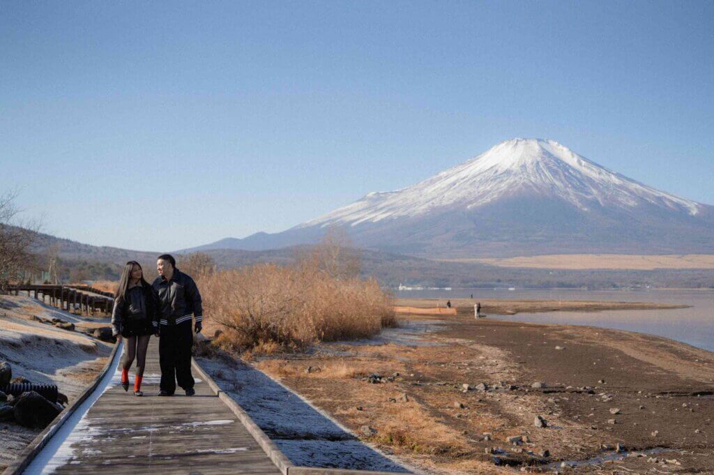 On December 7, 2025, everything finally came together. They arrived at Lake Yamanakako, with Mount Fuji standing clear and cloudless in the background.