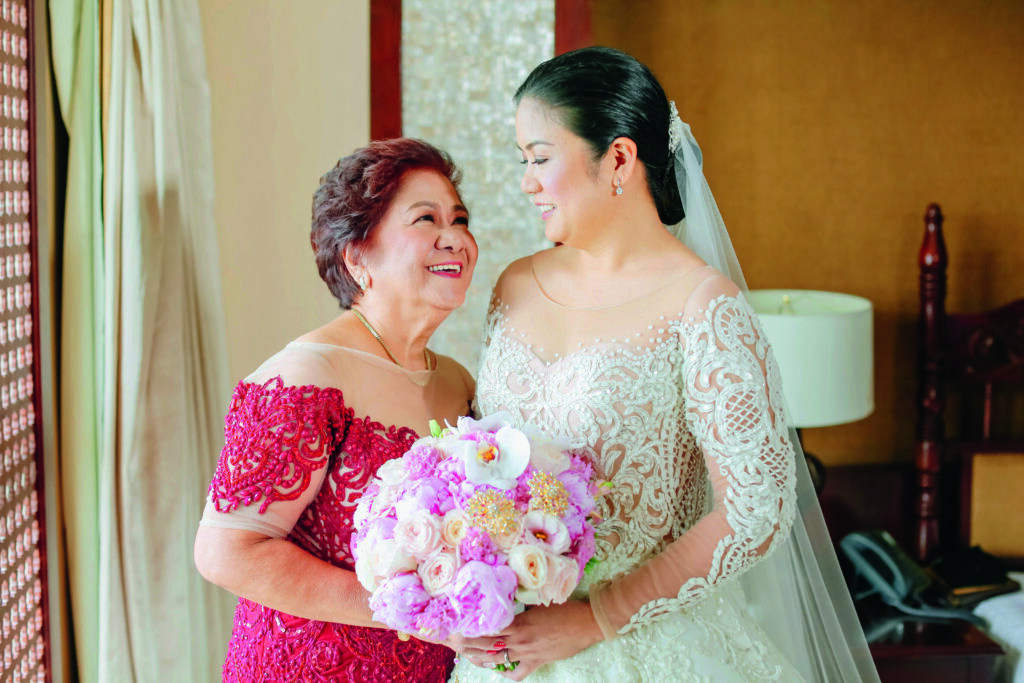It’s hard to believe that a wedding as beautiful as Donald Puno and Charlene Malong’s was planned in part overseas. Despite their busy schedules and proximity challenges, the couple managed to coordinate with suppliers via video conference, including sending the bride’s measurements from halfway around the world. They were able to maximize the tight Manila schedule by going from errand to errand to secure all the wedding details wasting no time in the process. What they achieved was romantic elegance with shades of blush pink contrasted with pops of red and enhanced with champagne-colored accents. Talk about beauty in harmony!