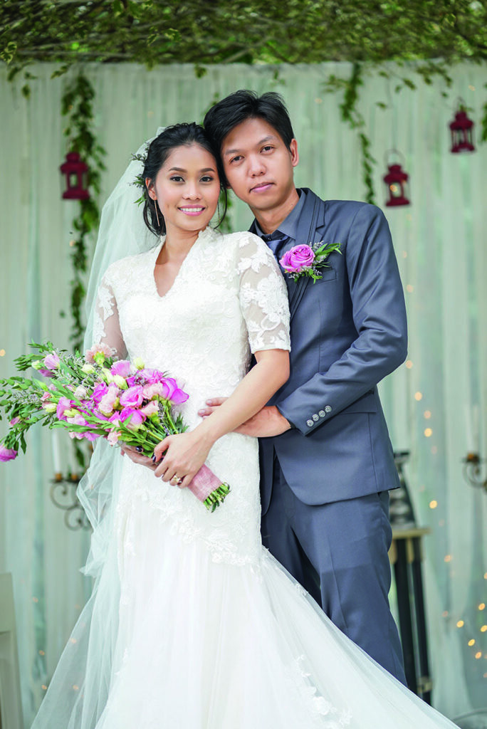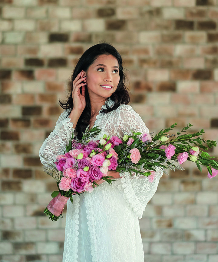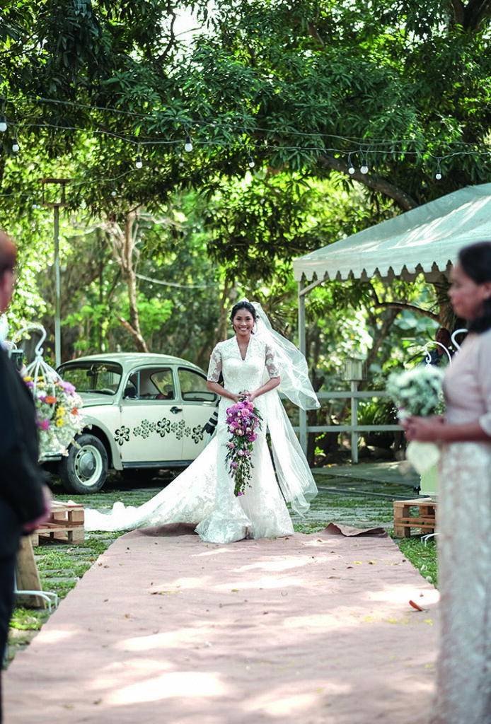 THE PERFECT MATCH in their union gladly translates to their wedding celebration. MARK ANDREW NERI and KATHERINE PAZON experienced the joy of seeing a perfect combination when they dreamed up a rustic theme for their venue of choice. One would know at the onset that everything would be harmonious as both the bride and the groom are self-confessed nature lovers and fans of wooden elements, strategic lighting, and plenty of flowers. Therefore it’s no wonder that even while the bride was initially overseas at the time of the planning and they had to split tasks between them, they were still able to achieve a charming celebration with a cohesive look. Now that’s teamwork at its best.