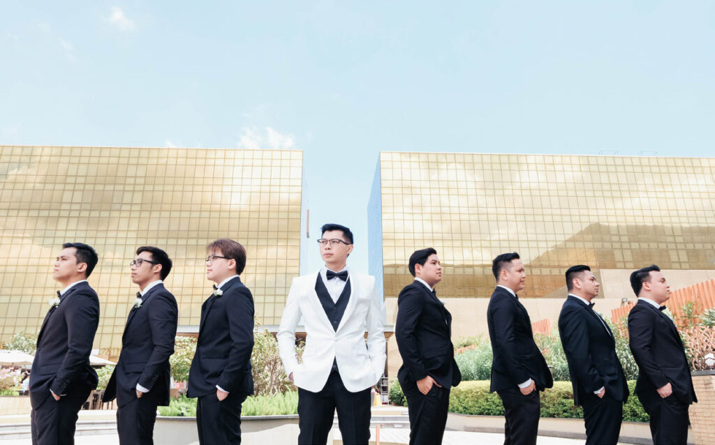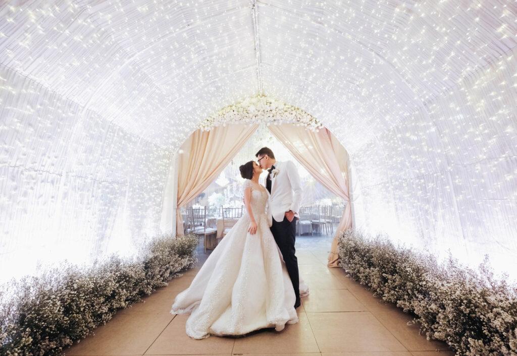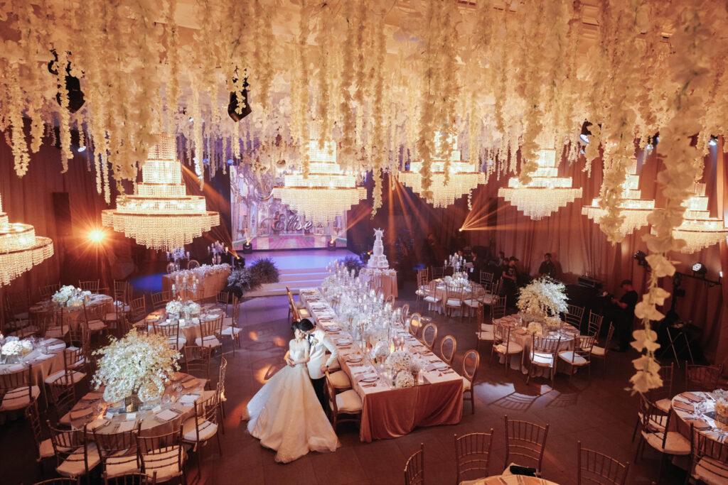 For the occasion, the pair decided that a classic wedding theme would suit their timeless romance of eight years and counting. The duo employed a soft color scheme of pristine white accented with regal gold.